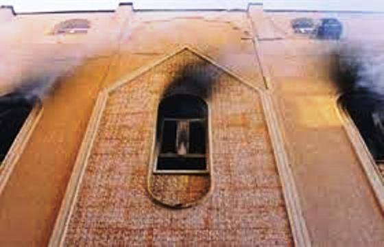 The assailants threw firebombs at Mar Gergiss church in Sohag, a city with a large community of Coptic Christians who comprise up to 10 percent of Egypt's 84 million people, causing it to burn down, the official MENA news agency said.