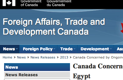 “Canada firmly believes that implementing a transparent, democratic system that respects the voices of all Egyptians, including members of all religious communities, is the best way to restore calm and give all Egyptians a stake in the future stability and prosperity of their country.