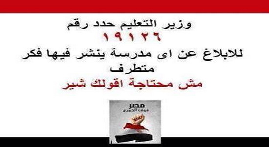 The hotline (19126) aims to fight extremism in Egyptian schools.