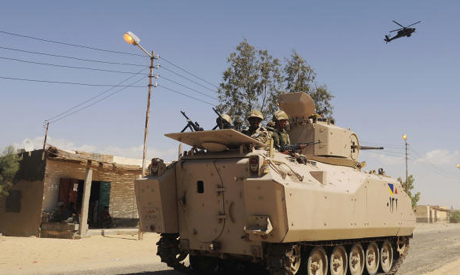 Wednesday evening, four army soldiers were injured when their bus drove by a roadside bomb set by alleged militants in the central Sinai region, according to MENA.