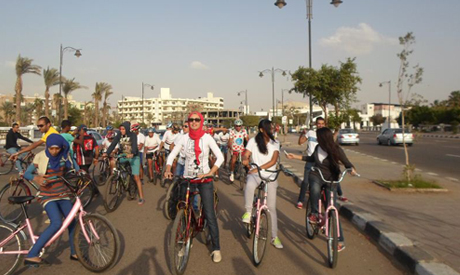 A group that goes by the name “Tomorrow” organized a bicycle demonstration in Egypt’s Suez on Friday evening where tens of girls biked on the Corniche in defiance of sexual harassment.A number of men also joined the demonstration in solidarity with the female participants to stress that society must let women go about their daily lives without fear.
