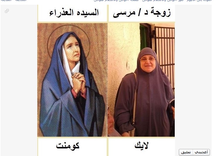 Page called “I’m a proud Muslim Brotherhood” on Facebook considered the former first lady of Egypt, ‪Mrs. Naglaa Morsy, is superior to the holy virgin Mary!