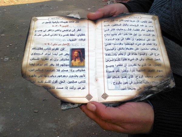 KERDASA, Egypt — Three times a week without fail, the sound of ancient chants reverberates from the blackened walls of the Church of the Archangel Michael. Once aglow with precious icons and flickering candlelight, the Coptic church outside Cairo now stands nearly bare, looted and burned by an angry mob more than four months ago.