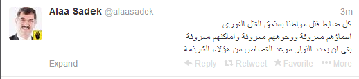 On his Twitter account, Alaa Sadik, anchor and big fan of the Muslim Brotherhood, invited other supporters of the Muslim Brotherhood to kill the soldiers of the army as well as policemen in order to enjoy heaven.