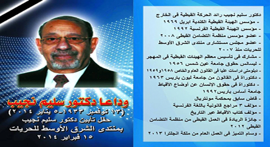 Middle East Forum for Freedom to hold a memorial service for Dr. Saliem Naguib, Coptic activist and pioneer of the Coptic movements in the Diaspora.