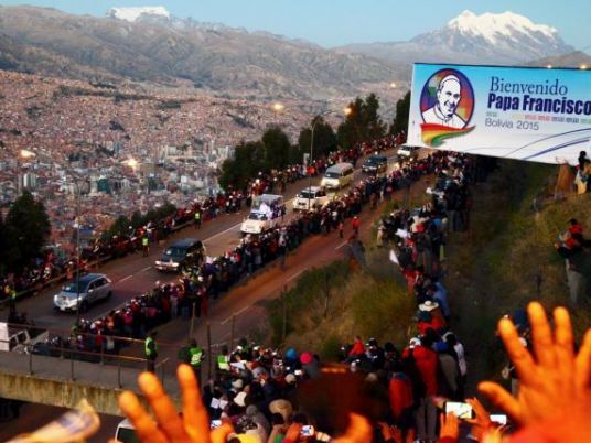 Francis flew into Bolivia from Quito, Ecuador, where he showed his sense of humour during the last few hours of his trip to that country. In Ecuador he drew crowds totalling nearly 2 million people.