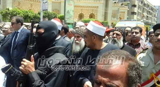 Church delegation of some priests in Beni Suef with a large delegation of Muslim clerics offered condolences in the military funeral of the police martyr, Captain Mohammed Essam.He was assassinated by some elements of the terrorist group.
