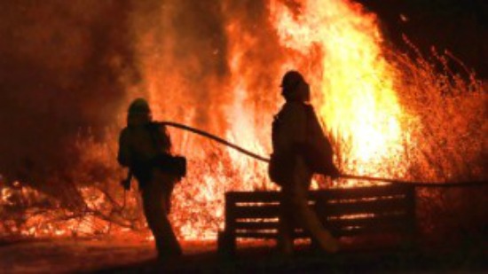 Hundreds of firefighters are battling a blaze in Los Angeles County that has forced at least 5,000 people to evacuate their homes, authorities said.