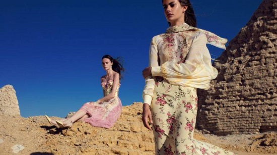 The collection was captured through Louay Nasser’s lens in none other than Fayoum governorate. The photoshoot was styled by Yosephine Melfi, featuring Clara Berry and Marine Barbier. “Louay wanted to add a rough and edgy aspect to the photoshoot. He wanted a venue with evident structure in order to represent geometrical shapes as opposed to the flowing dresses,” the designer explained.