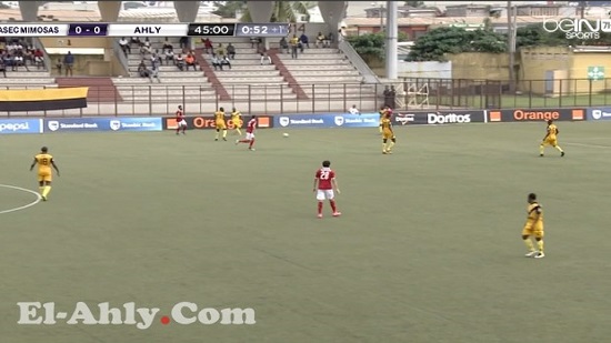 Ahli dominated the first half but missed a chance Amr Gamal first goal from a cross by Karim Walid also missed the opportunity Ma'lul also a goal from a cross by Karim Walid "Nedved"