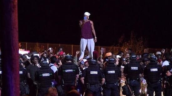 Earlier in the evening, police in riot gear reportedly used tear gas on protesters who threw rocks and water bottles at them as they wielded large sticks and blocked traffic. One officer was sent to the hospital after being struck in the head by a rock, police said.