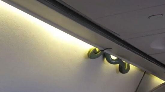 A university rector from Torreon posted video on Twitter of the unwelcome passenger snaking its way out of a an overhead bin and dropping into the cabin.