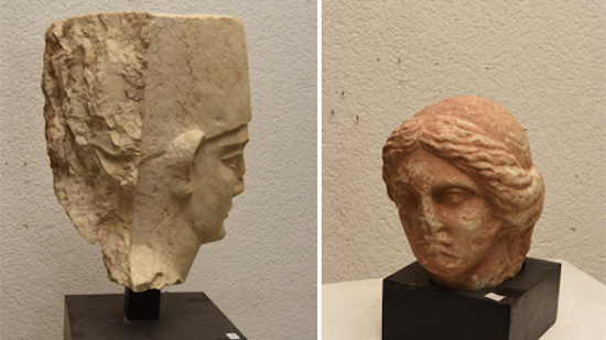 The confiscated objects, from the third and fourth centuries, include a head of Aphrodite and two funereal bas-reliefs.