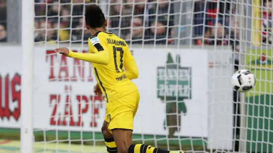 The Gabon striker doubled Dortmund's lead on 55 minutes after Sokratis Papastathopoulos had put Dortmund ahead in the first half.