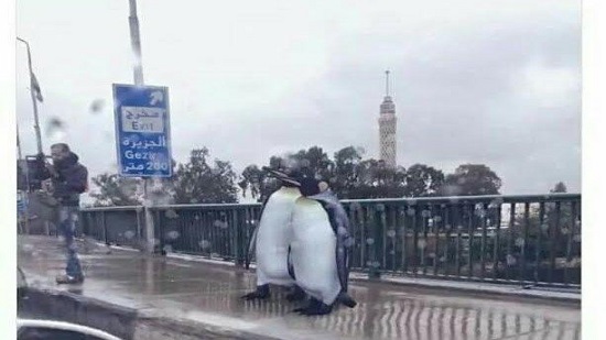 This brings back in mind all the comics Egyptians have been posting on social media, and they make perfect sense for the situation. This includes the comic in which a middle-class child explains the penguin to his mother as a duck walking on two feet, or another one that features two penguins stuck in the usual traffic on 6th of October bridge and asking for the direction to Mall of Egypt, as they have a work interview.