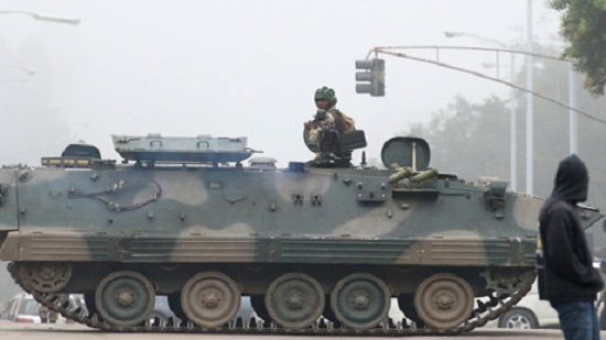 Just 24 hours after military chief General Constantino Chiwenga threatened to intervene to end a purge of his allies in Mugabe s ZANU-PF, a Reuters reporter saw armoured personnel carriers on main roads around the capital.