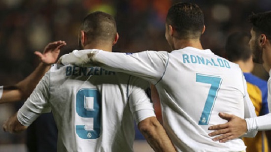 Benzema scored his goals just before halftime, first with a strike from inside the area and then with a shot into the open net after a pass by Ronaldo in a fast breakaway.
