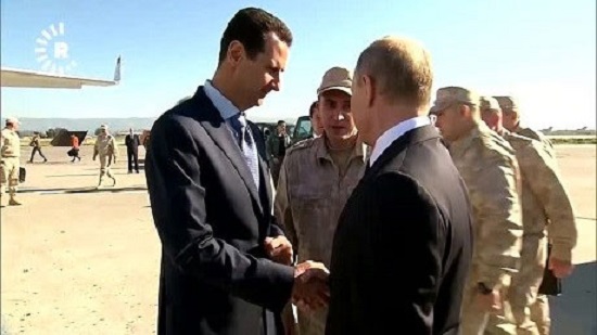 Putin and Assad were pictured smiling and shaking hands.