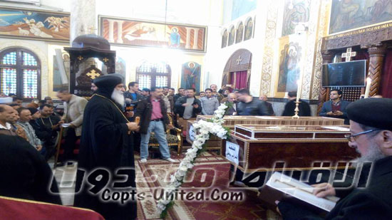 Abba Theodthius, Bishop of Giza, presided over the funeral of two Copts who were killed in gun shot at liquors store.