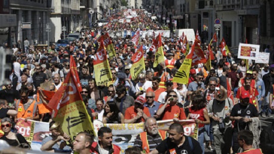 Thousands of people marched across France Thursday to protest French President Emmanuel Macron s labor law changes, as rail strikes and student protests continued to shake the country.