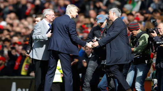 It was all smiles as the Portuguese and Wenger enjoyed a warm embrace before kick-off while Wenger was applauded by the United support.