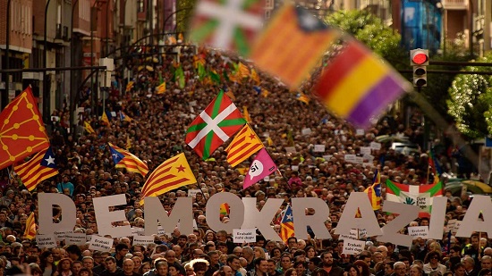 The human-chain protest was organized by Basque group Gure Esku Dago (In Our Own Hands) and ran from Donostia (also known as San Sebastian) to the Basque parliament in Gasteiz (Vitoria).