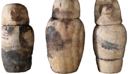 The lids are in the shapes of a man, a baboon, a jackal and a falcon, and were skilfully carved by at least three different artists.