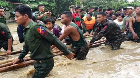 Pictures on social media showed soldiers using makeshift bamboo rafts and kayaks to evacuate people from flooded homes and shops, some carrying children and the elderly through knee-deep waters.
