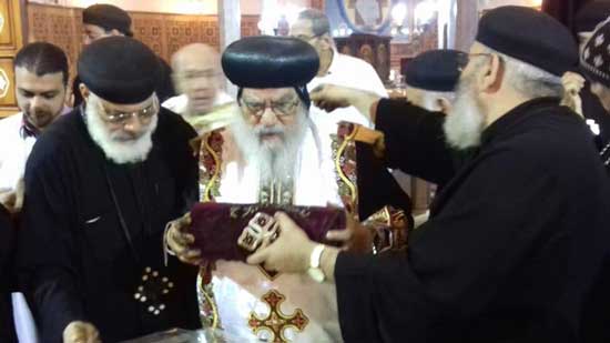 Abba Pachomius, former acting Patriarch, perfumed the remains of St. Augustine in Damanhour at the feast of the Egyptian saint.