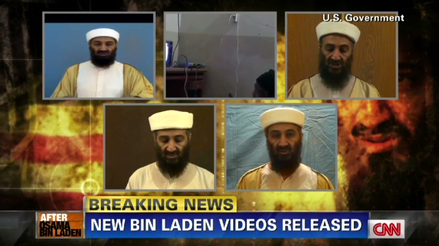 Four of the clips show bin Laden, who was killed along with four others Monday by U.S. commandos, in more formal attire. No audio of the terrorist leader speaking accompanied the images.