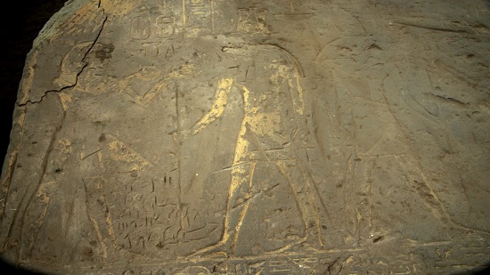The sources added that the top part of the second tablet shows King Ptolemy IV standing, holding a stick’s end in the form of Horus while behind him stands his wife Arsinoe III, in front of the the triad of the temple.