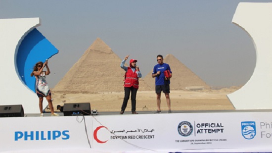 The Egyptian Red Crescent and Philips International Charity Foundation celebrated on Friday a new entry into the Guinness Book of Records at the Giza Pyramids.
