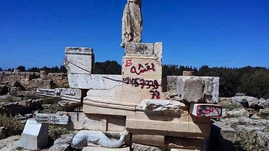 Graffiti covers the ruins of Cyrene in eastern Libya, a city founded by Greeks more than 2,600 years ago that once attracted tourists but is now neglected and the target of vandals.