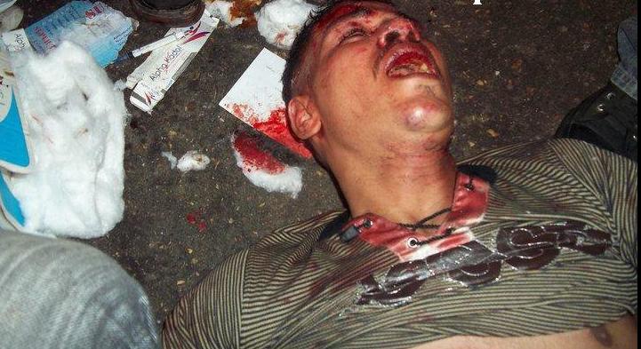 At the same time another Muslim group was attacking the protesters from the bridge overlooking the site where the sit-in is staged. According to eyewitness Emad Abdelmalak from Assuit, who was also injured, a minibus stopped at the bridge overlooking the sit-in site, a dozen men came out of it carrying Molotov cocktails and stones. He said the Salafis were very organized, they came in minibus, attacked and disappeared.