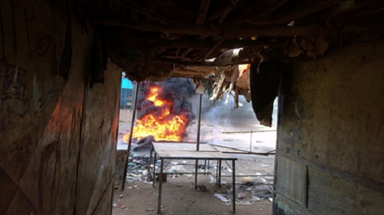 In Atbara on Wednesday, a mob torched the local headquarters of President Omar Bashir s National Congress Party. Another video obtained by the AP showed the glass-and-steel building engulfed in flames along with several cars parked outside. Authorities responded by declaring a state of emergency in the city and a night-time curfew.