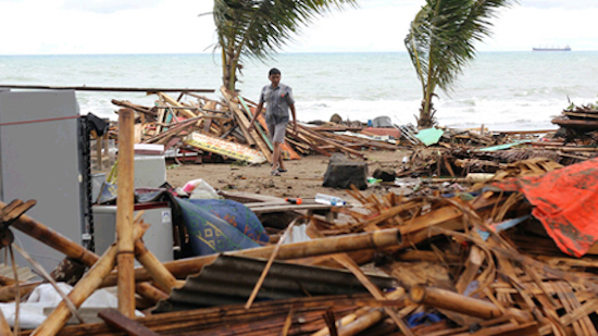The damage became apparent after daybreak Sunday. Nine hotels and hundreds of homes were heavily damaged by the waves. Broken chunks of concrete and splintered sticks of wood littered hard-hit coastal areas, turning beach getaways popular with Jakarta residents into near ghost towns. Vehicles were tossed into the rubble or were buried under collapsed roofs. Debris from thatch-bamboo shacks was strewn along beaches.