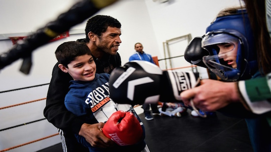 In a spartan hall, the former middleweight contender warms up, shadow-boxing in front of a full-length mirror before calling the assembled kids to order.