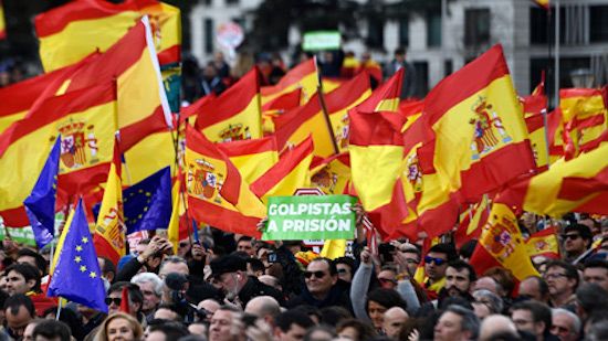 The rally was called by centre-right Ciudadanos, the conservative Popular Party (PP) and far-right Vox, which has only recently burst onto Spain s political scene, as well as a handful of smaller far-right groups.