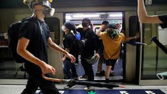 The mass transit protest follows a demonstration at the Chinese-ruled city s international airport on Friday and violent protests at the weekend when activists clashed with police who fired rubber bullets, tear gas and sponge grenades - a crowd-control weapon.