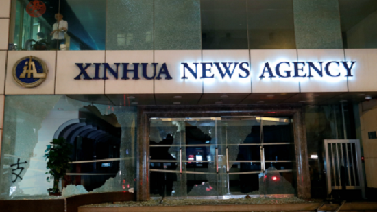 China s state-owned Xinhua News Agency denounced the attack on its office in Hong Kong by pro-democracy protesters as "barbaric during a melee that marked nearly five months of unrest in the Chinese territory.