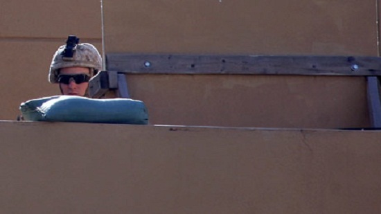 By early evening Tuesday, the mob had retreated from the compound but set up several tents outside for an intended sit-in. Dozens of yellow flags belonging to Iran-backed Shiite militias fluttered atop the reception area and were plastered along the embassy s concrete wall along with anti-U.S. graffiti. American Apache helicopters flew overhead and dropped flares over the area in what the U.S. military called a ``show of force.``