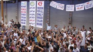 Troops fired with machine guns mounted on tanks in the town of al-Rastan on the main road north to Turkey.