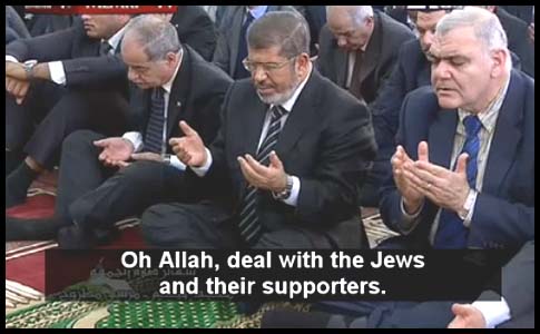 The call to destroy the Jews did not disturb Morsi’s prayers. (See “Egyptian President Morsi Joins Preacher in Prayer for Dispersal of the Jews,” Middle East Media Research Institute, Video Clip No. 3614, October 19, 2012)