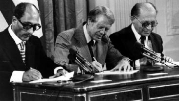 The Camp David peace treaty was signed by then-Israeli prime minister Menachem Begin and his Egyptian counterpart Anwar Sadat on September 17, 1978. The treaty severely restricts the amount of Egyptian troops and artillery permitted in Sinai.