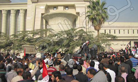 Hundreds of pro-Morsi demonstrators gathered at the HCC late Saturday to demand the court delay its verdicts due to be issued today.