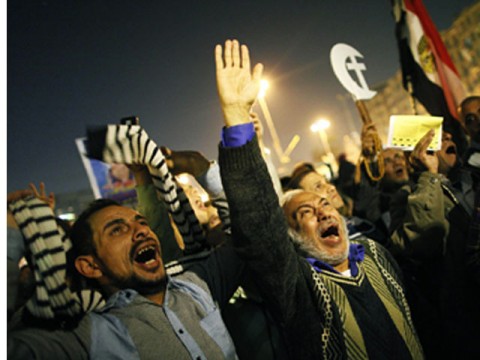 Egypt’s opposition mustered only a low turnout for protests late Tuesday against a draft constitution backed by Islamist President Mohamed Mursi that looks likely to be adopted in a weekend referendum second round. But analysts cautioned that adoption of the proposed charter would not heal the deep divisions gripping the Arab world’s most populous country. Up to 2,000 people rallied outside the presidential palace and a few hundred more in Cairo’s Tahrir Square, AFP correspondents said.