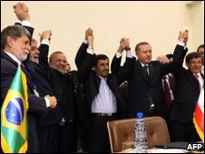 Turkish Prime Minister Recep Tayyip Erdogan and Brazil's President Luiz Inacio Lula da Silva were at the talks in Tehran with Mr Ahmadinejad.
