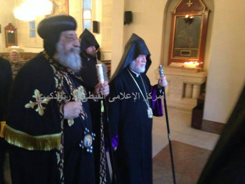 Pope Tawadros II, pope of Alexandria and Patriarch of St. Mark See, visited today His Holiness Catholicos Aram I, Pope of the Armenian Orthodox at the Catholic Armenian Orthodox Church of St. Krikor (Gregory the Illuminator).