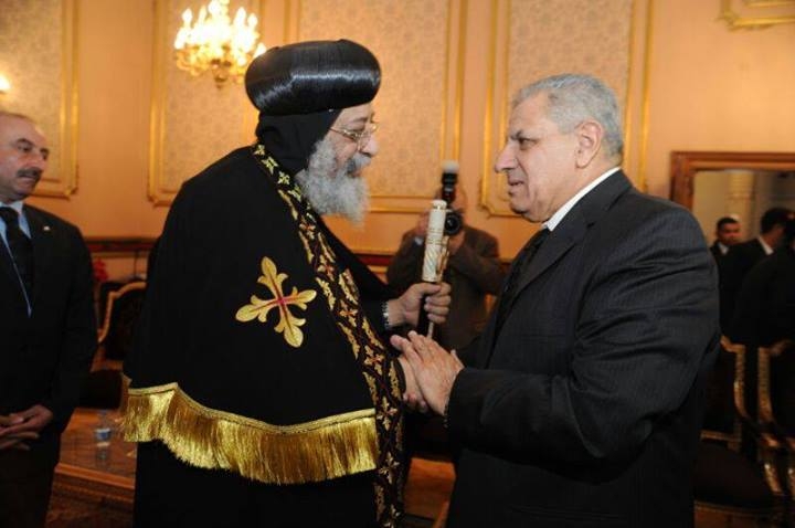 Ibrahim Mehleb, Egypt's Prime Minister, visited pope Tawadros II - Pope of Alexandria and Patriarch of Saint Mark See – to offer his sincere condolences on the death of his mother, who passed away on Friday.