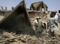 Two bombers struck seconds apart in Yakaghund village in the Mohmand tribal region, devastating government buildings, shops and houses.